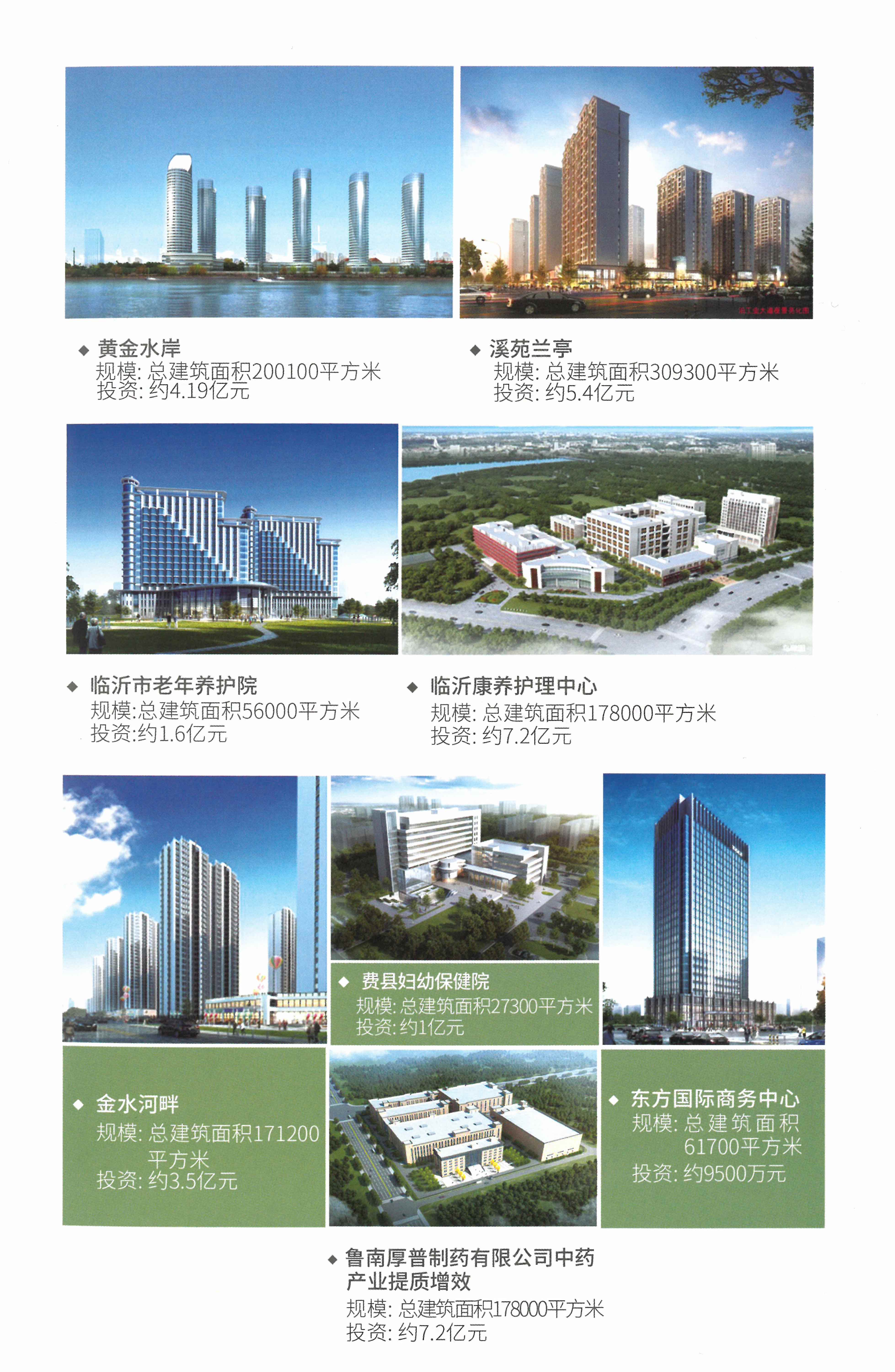 ·黃金水岸 ·東方國(guó)際商務(wù)中心和地下車庫(kù)工程 ·溪苑蘭亭 ·魯南厚普制藥有限公司中藥產(chǎn)業(yè)提質(zhì)增效 ·臨沂康養(yǎng)護(hù)理中心 ·臨沂市市民活動(dòng)中心 ·臨沂市老年養(yǎng)護(hù)院 ·費(fèi)縣婦幼保健院新院 ·迎賓廣場(chǎng)書法城 ·蒙陰公共交通樞紐建設(shè) ·金水河畔9#-17#住宅樓及下部商業(yè)、地下車庫(kù)