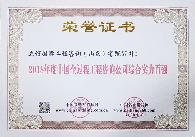 | 立信國際工程咨詢(山東)有限公司獲得2018年度工程咨詢公司多項榮譽稱號 |