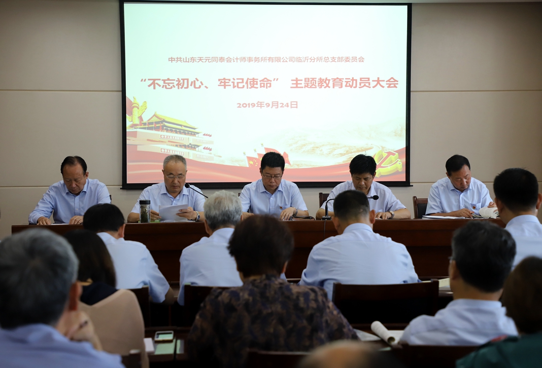 日前,中共山東天元同泰會計師事務(wù)所黨總支召開動員大會,在全所范圍內(nèi)全面啟動“不忘初心、牢記使命”主題教育活動。會上傳達學(xué)習(xí)了注冊會計師行業(yè)黨委和市行業(yè)黨委的有關(guān)文件,公布了事務(wù)所 “不忘初心、牢記使命”主題教育活動實施方案,總支書記裴波苓作了主題教育工作部署,對開展各項活動進行了安排。同時,組織全體黨員進行第一次集中學(xué)習(xí)。 9月12日,事務(wù)所黨總支、審計評估支部和項目管理支部支部書記與黨務(wù)工作者參加了省注協(xié)行業(yè)黨委召開的主題教育動員部署視頻會議。在省注協(xié)行業(yè)黨委下發(fā)主題教育實施方案后,事務(wù)所黨總支立即召開了總支擴大會議進行學(xué)習(xí),對如何開展主題教育活動進行了安排,研究并制訂了實施方案。總體要求是以深入學(xué)習(xí)習(xí)近平新時代中國特色社會主義思想為根本任務(wù),結(jié)合事務(wù)所實際深入貫徹“守初心、擔使命,找差距、抓落實”的總體要求,以事務(wù)所脫鉤改制20周年為契機,推動事務(wù)所黨員和從業(yè)人員全面系統(tǒng)學(xué)習(xí)貫徹習(xí)近平新時代中國特色社會主義思想,教育引導(dǎo)全體人員發(fā)揚革命傳統(tǒng)和優(yōu)良作風(fēng),忠誠擔當,誠信執(zhí)業(yè),再創(chuàng)佳績。具體工作安排要結(jié)合本事務(wù)所和黨員實際,創(chuàng)造性的落實理論學(xué)習(xí)教育、調(diào)查研究、檢視問題、整改落實具體任務(wù)。