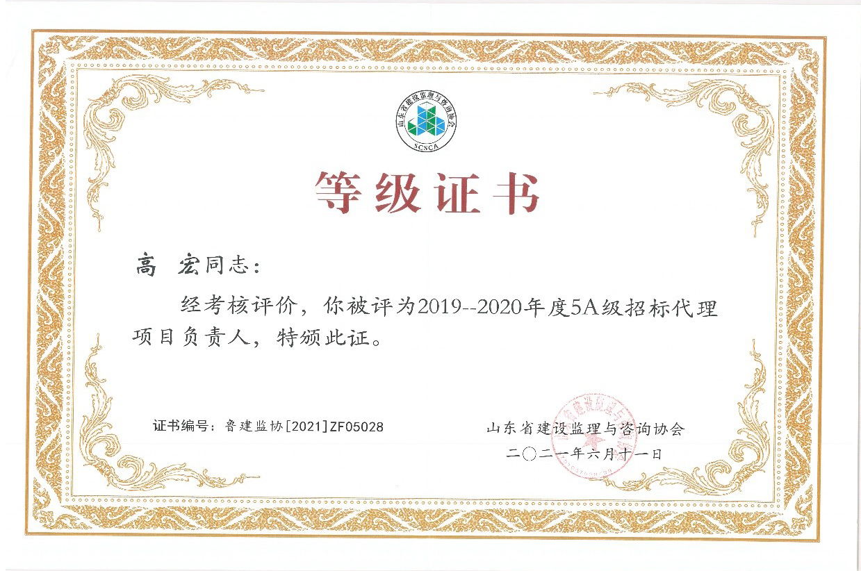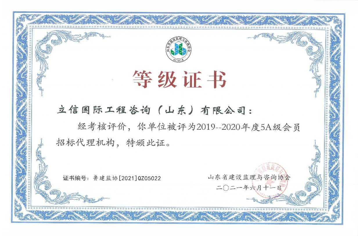 | 我公司獲得山東省首批5A級監(jiān)理企業(yè)、5A級招標(biāo)代理機構(gòu)、4A級全過程工程咨詢單位 |