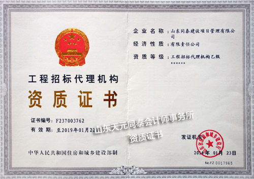 省建設(shè)廳批準的工程招標代理乙級資格