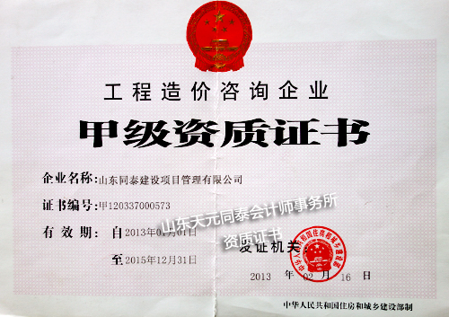 工程造價咨詢甲級資質(zhì)